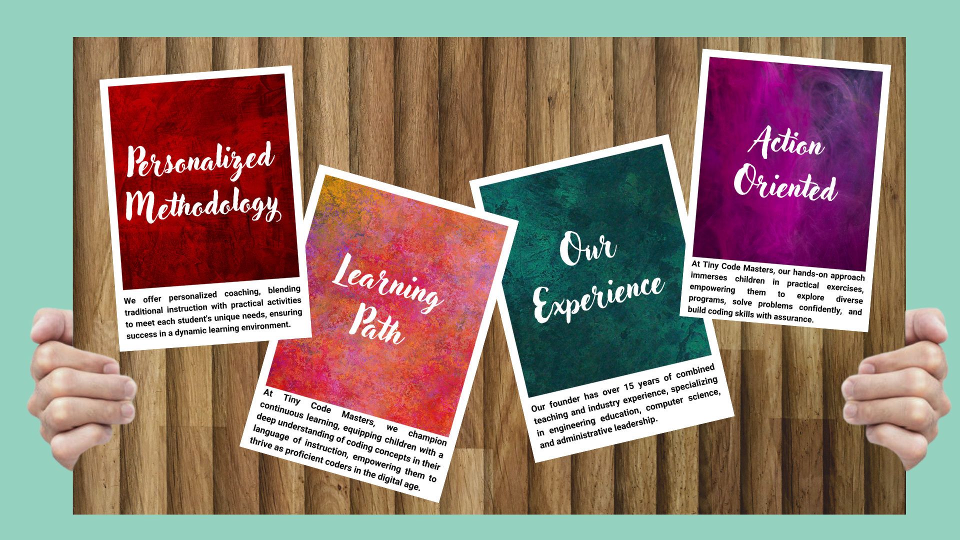 Our students embark on a coding journey with our captivating algorithmic-based curriculum, which not only enhances their self-confidence but also nurtures logical thinking, analytical skills, and problem-solving abilities. Equipped with these vital skills, they are enriched for success in the corporate world. This is the essence of the Tiny Code Masters approach!